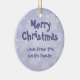 Lightweight, smooth, pure white ornament with nice sheen. Perfect size to be seen from across the room ... and to attract closer inspection! Price was great for ordering enough for the whole family! Clear, bold black design just as requested. Matches the order exactly. Just so nice!