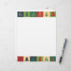 Christmas newsletter paper with squares of multi-colored Christmas trees lining the top and the bottom. Add your name or greeting for a personal touch.
