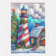 Christmas Lighthouse Nautical Coastal Mountain Kitchen Towel