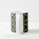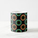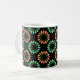 This festive mug features a holiday themed pattern composed of circles made up of graphic Christmas light bulbs in colors of red, orange, green and blue.
