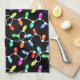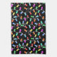 Classic, multi color Christmas string lights make a festive pattern for the holiday season! These colorful light bulbs are on a white string that slightly twists and turns for a whimsical look. The design pops on a black background color. You can change the size of the pattern and pick your own background color on this custom kitchen towel. Add some fun shining lights to your holiday cooking and baking this year!