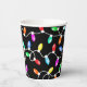 Classic, multi color Christmas string lights make a festive pattern for the holiday season! These colorful light bulbs are on a white string that slightly twists and turns for a whimsical look. The design pops on a black background color! You can change the size of the pattern and pick your own background color for this party paper cup. Add some fun shining lights to your holiday celebration this year!