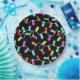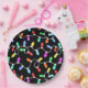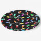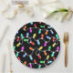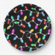 Classic, multi color Christmas string lights make a festive pattern for the holiday season! These colorful light bulbs are on a white string that slightly twists and turns for a whimsical look. The design pops on a black background color! You can change the size of the pattern and pick your own background color for this party paper plate. Add some fun shining lights to your holiday celebration this year!