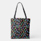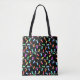 Classic, multi color Christmas string lights make a festive pattern for the holiday season! These colorful light bulbs are on a white string that slightly twists and turns for a whimsical look. The design pops on a black background color! You can change the size of the pattern and pick your own background color on this custom tote bag. Add some fun, shining lights to your holiday celebration this year!