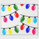 This wrapping paper has a Christmas design of three strings of old-fashioned Christmas lights.
