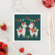 These Christmas paper napkins feature llamas wearing red scarves and red hats, and carrying gifts on their backs.