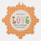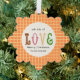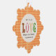 A modern and neatly designed Christmas Personalized Ornament Card with the word LOVE in adorable serif typography style and bright orange color palette, customizable and perfect for Christmas Tree decoration and sending the warmest wishes to your loved ones in the jolly season.
