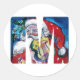 CHRISTMAS M LETTER / SANTA WITH VIOLIN MONOGRAM CLASSIC ROUND STICKER