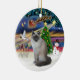 Some of the major symbols of Christmas blended into a charming scene, featuring a Birman cat.