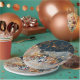 Beautiful Christmas snow hill and dark blue sky on party paper plates with cute characters and gold elements. The squirrels, Snowman, a girl and a baby, a fox, mice, an owl, ravens, and a little bird will bring out the right Christmas spirit. Great table decor for Christmas Party/ Gathering
