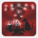 Christmas Magic with Black Cat on Red Rainbow Square Sticker