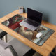 LOVE this desk mat! It's large! It fits across my desk. No need for a small mouse pad now! Color and print are excellent. Quality seems to be excellent too. Delivery was about 3 days sooner than expected. I think this is one of my favorite Zazzle products! Excellent. The color is vibrant and true to what I expected.