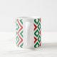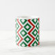 This bold green, white, and red geometric pattern is an original ornamental design perfect for Christmas. Green diamonds with white centers are surrounded by white meanders which angle around them. Red zigzags separate the winding white paths and offset diamonds.