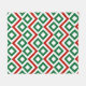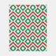 This bold green, white, and red geometric pattern is an original ornamental design perfect for Christmas. Green diamonds with white centers are surrounded by white meanders which angle around them. Red zigzags separate the winding white paths and offset diamonds.