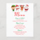Add some fun to your tables with this cute green and white christmas menu with santa claus, an elf, snowman and Rudolph the red nosed reindeer.
