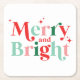 christmas merry and bright pink red square paper coaster
