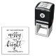 Self-inking rubber stamp with brush font script, "May your Christmas be Merry and Bright." Personalize with your family name.