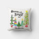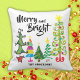 Merry and Bright in a fun font. Whimsical, illustrated Christmas trees at the bottom, all different and unique, but all equally fun! Background color of the pillow can easily be changed to suit your needs.
