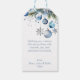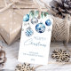 Merry Christmas classic metallic silver blue baubles and snowflakes snowy fir trees watercolor template personalized gift tags