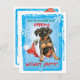 Invite all your friends to a Doggone Great Holiday Party this Christmas with these invitations showing a cute Miniature Pinscher puppy sitting in a Santa hat amid a bunch of snowflakes. Have a Happy Howliday Party!
