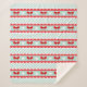 Festive sherpa blanket with mint/white stripes pattern, red bows and white stars.