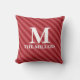 Christmas Modern Monogram Cute Red Striped Festive Throw Pillow
