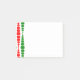 This Christmas notepad has a mid-century modern design of red and green rounded rectangles in increasing and decreasing size running vertically on a field of white.