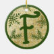 Christmas Monogram Letter F Green Gold Glitter Ceramic Ornament