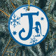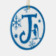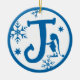 Christmas Monogram Letter J Blue White Ceramic Ornament