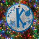 Christmas themed, monogram letter K, in blue on a silver glitter background. Blue can be modified by clicking on the 'customize further' link. Cute letter K with snowflake, string lights, and a bauble. If you like the silver glitter background, and wish to have it on another ornament in a different letter, please contact me by message or email. My email is in About bio above.