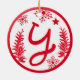 Christmas Monogram Letter Y Red White Ceramic Ornament