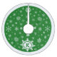 Monogram Christmas tree skirt. Customizable green tree skirt with white snowflakes and white border. Large snowflake in center front of skirt where you can add your initial. Unique Christmas tree skirt personalized with the monogram of your family's last name.