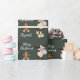 This cute Christmas moose wrapping paper will look perfect under your Christmas tree. The design features a cute, whimsical Christmas moose and gingerbread man cookie on a dark sage green background. Personalize with your name.