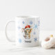 This cozy Christmas Mug features a charming watercolor illustration of a cute mouse wearing a Santa hat, surrounded by beautiful blue snowflakes. Says "Let It Snow" on the back. Personalize with a name or delete to leave blank. Perfect for hot chocolate, milk, tea, or coffee. Get into the holiday spirit with every sip!