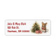 Watercolor Christmas mouse with holiday gifts and tree on a white background.