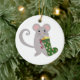 Christmas Mouse with Green Stocking Ceramic Ornament