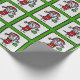 Funny cartoon mouse with stick arms and legs, pink nose, and googly eyes wearing a Santa suit, carrying a gift in green wrapping paper and a bow. Brighten up your Christmas gifts with this fun and unique wrapping paper. Original digital cartoon art by Taylor Addams.