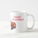 Christmas holiday ceramic coffee mug is shown with a festive holiday red truck print with Merry Christmas text.