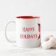 This ceramic coffee mug is shown with a festive holiday red poinsettia print.