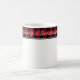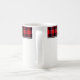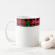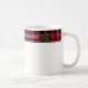 Ceramic coffee mug is shown with a Christmas holiday plaid holly print design.
