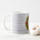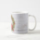 This ceramic coffee mug is shown in a festive rustic look for Christmas holiday with a wreath and red cardinal bird print design.