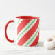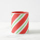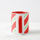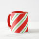 Holiday ceramic coffee mug shown with a festive Christmas candy cane striped print design.