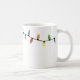Christmas holiday ceramic coffee mug is shown with a festive holiday lights print with Merry Christmas text.