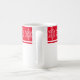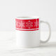 Ceramic coffee/tea/cocoa mug is shown with a festive Christmas snowflakes print.