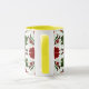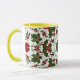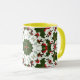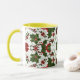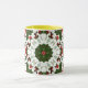 This is a Christmas mug. It has a sophisticated design with a harmonious combination of red and green. Have a happy Christmas.