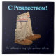 A pair of mukluks superimposed on a starfield background with text reading "S Rozhdestvom" (A Russian Christmas greeting) in glowing blue and white. Additional text reading, "The mukluks were hung by the woodstove with care" also appears. A far northern take on the famous poem "A Visit from St. Nicholas." The poem, also known as "Twas the Night Before Christmas," was first published anonymously in 1823 and later attributed to Clement Clarke Moore, who acknowledged authorship.