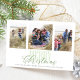 Christmas Multi Three Photo Green Snowflake Holiday Card