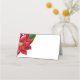 This folded name place card is shown in white with a festive Christmas red poinsettia flower.