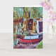 A pretty art design of a narrowboat moored in a peaceful part of the canal.