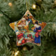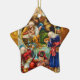 Featuring a colorful and striking vintage illustration nativity scene from an unknown artist. There is a gold background underneath that shows at the tips of the star.